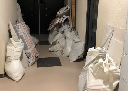 После выполнения ремонтных работ мастера уберут оставшийся строительный мусор из объекта. Остатки материалов будут упакованы в мешки и вывезены на спецтранспорте. Все это будет происходить примерно в такой последовательности: